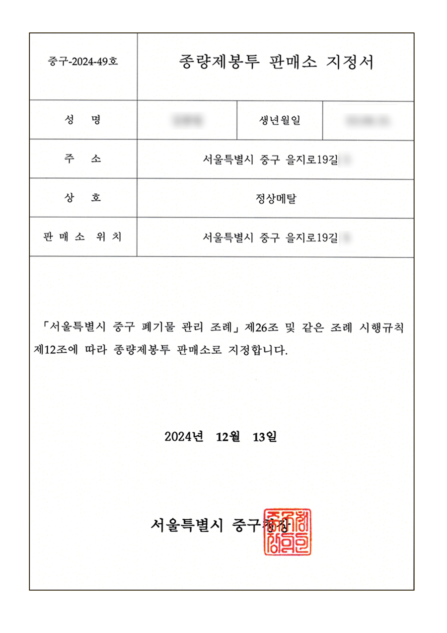• 낱장 30L 일반용 종량제봉투(서울 중구)